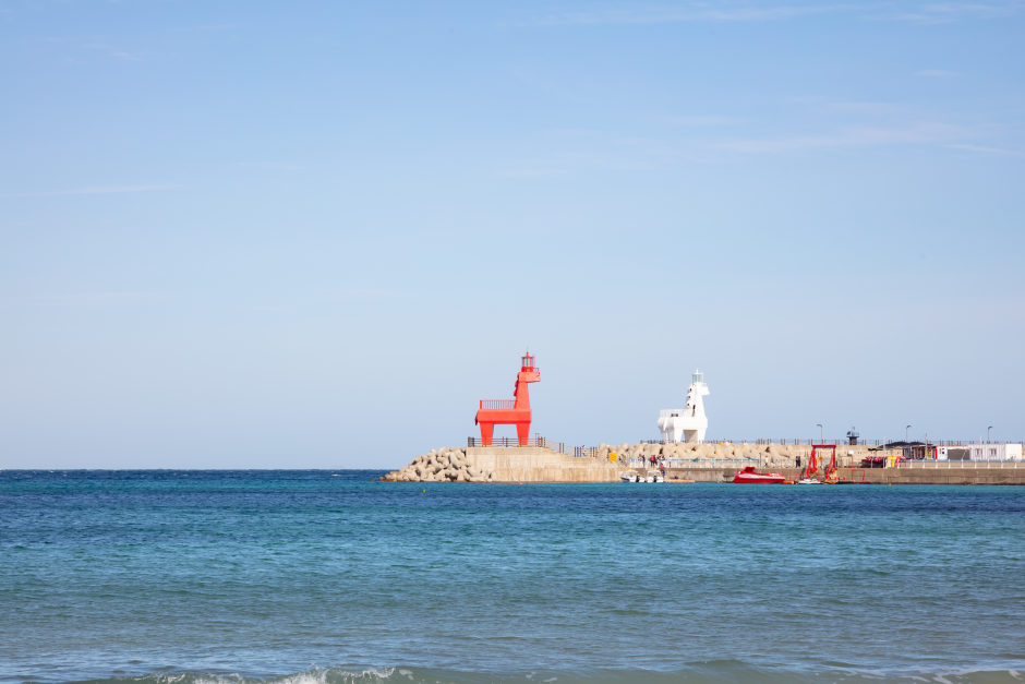 Ближайший пляж к центру города Чечжу, известный своим маяком в виде лошади