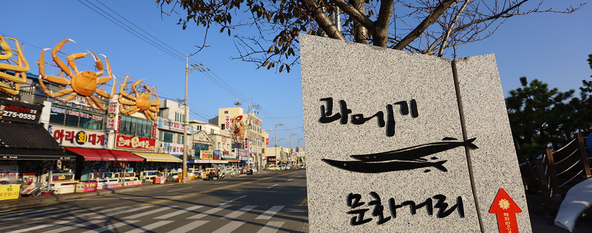 Гастрономическая улица с блюдами мульхве и квамеги в Курёнпхо (구룡포 과메기 물회거리)